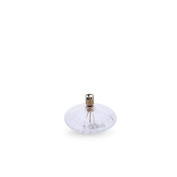 Open de bajonetsluiting, trek deze naar beneden en stel de lont maximaal 1 mm af. Vul de lamp met de peri-trechter tot de helft. Wacht 15 minuten voordat u hem aansteekt. De vlam mag nooit hoger zijn dan 2 cm. Is deze na 30 minuten toch hoger? Stel dan de lont lager in.